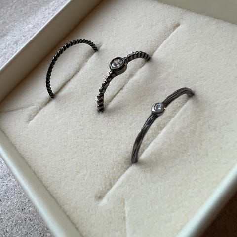 Anderledes og feminine ringe i sølvlook sælges. Ringene er nye og fåes i 18 mm. Svarende til 57-59.