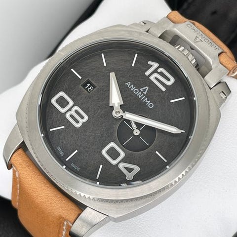 Meget sjældent udbudt Montres Militaire med skull dial. Uret er super stand. Det er nyserviceret. Og der gives 1 års garanti. Uret måler 47mm uden krone. Box og papirer medfølger. Remmen på det sidste billede samt en original grøn kanvasrem medfølger også. Hvem kommer først?