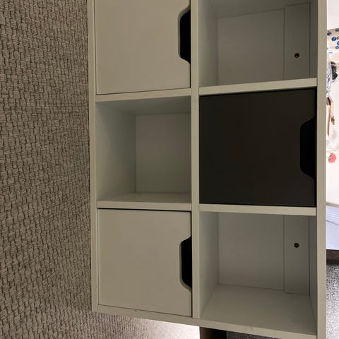 Hvidt opbevaringsmøbel med hylde