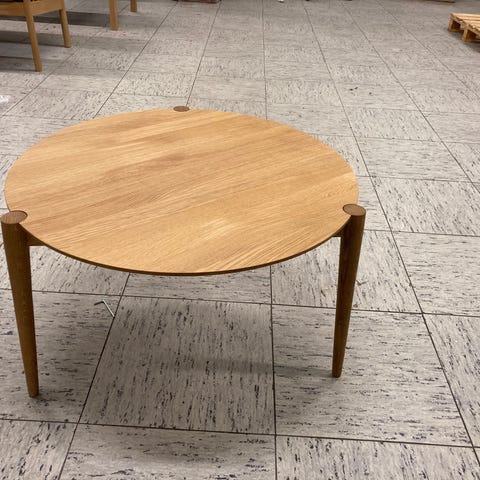 FDB Møbler D33 sofabord i olieret egetræ. Bordet har en skade på den ene side, som vist på billedet, herudover er i bordet i rigtig fin stand, andre mindre kosmetiske fejl kan forekomme.
