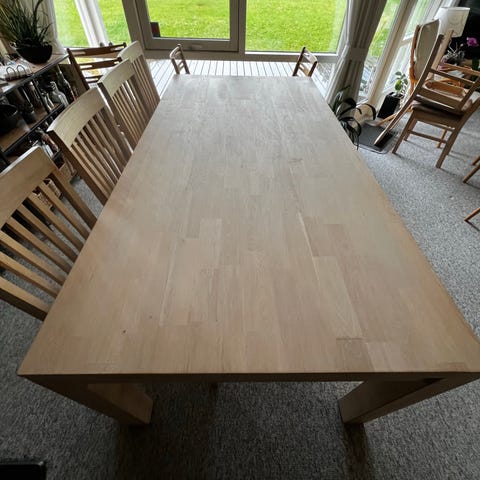 Egetræsbord med 8 stole