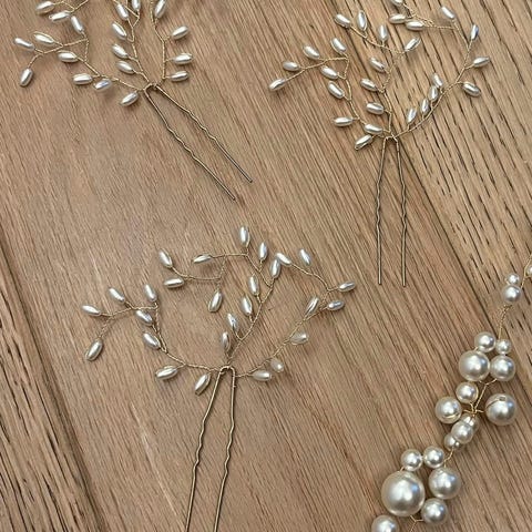 Twigs & Honey hårpynt med perler og slør i netdesign. Produktet er designet til at blive båret i håret og kan bruges til forskellige anledninger, herunder bryllupper og formelle begivenheder. Leveres i original æske med information om mærket.
