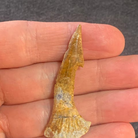 4 stk tænder fra forhistorisk savrokke (Myliobatis). Tænderne er mellem 100-66 millioner år gamle.