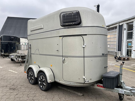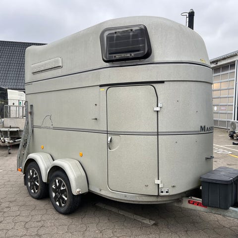 Brugt hestetrailer fra Böckmann med glasfiber sider, alubund, saddelskab, sparkeplader og sider puder.