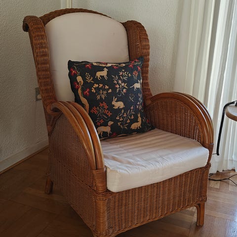 lænestol med grå flet købt i møbel hus