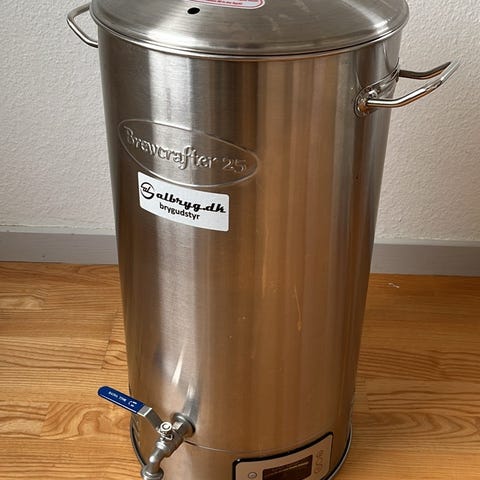 Ølbrygningssæt bestående af elgryde af mærket Severin med tappehane og låg. Udover også cirkuleringspumpe, hævert og hydrometer, forskellige slanger til cirkulering, metalrist, termometer.
