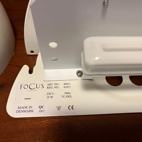 2 stk brugte Focus Belysning væglamper model 40064 i grå metal og hvide opalglas. Incl vægbeslag. Virker. Pr stk 400 kr