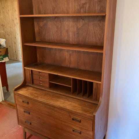 Smuk og klassisk dansk sekretær i teaktræ fra 1960’erne. Møblet er i utrolig flot stand og kombinerer elegant opbevaring med en praktisk arbejdsplads.