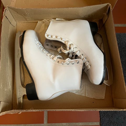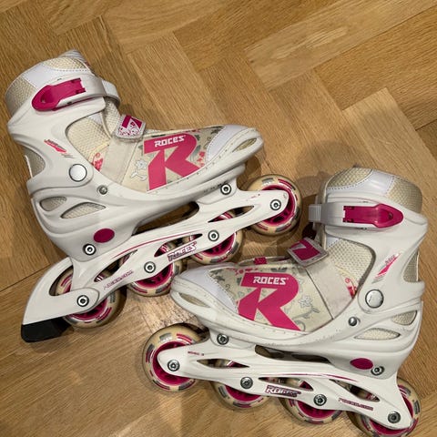Roces Alexis Ice skøjter i størrelse 38. Skøjterne har hvid og sort farve med røde og blå detaljer. Det er et par fine allround-skøjter, er bløde og behagelige invendigt, og har hård skal udvendigt, så man får den rette støtte. Thinsulate isolering for bedre varme. Materialet kombinerer plastik og tekstil med justerbar lukning for pasform.