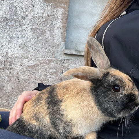 Vi har haft hende passet hos den skønneste familie med Christina i spidsen de sidste 5 måneder mens vi har været ude og rejse, og efter vi har set hvordan hun har blomstret op mens hun har fået lov at få mere plads, har vi det simpelthen for svært ved at tage hende ind i vores lille lejlighed igen. Det er derfor et krav, at hun bliver en frikanin i sit videre liv også. Mira er indekanin men har fået meget rum og plads til at være udendøre hos Christina.