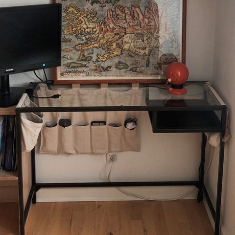 Skrivebord med råhvid bordplade.