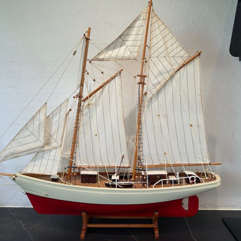 Modelskib i træ med sejl