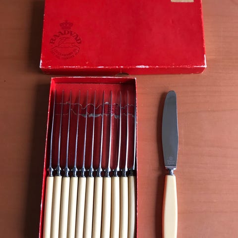 Raadvad Stainless Danmark knive i sæt af 10 stk. Knivene er fremstillet i rustfrit stål og har skaft i et brunt materiale. Velegnede til almindelig brug ved borddækning.