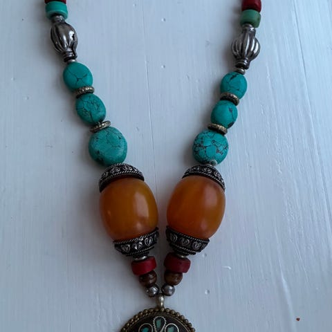 Masai halskæder fremstillet i akryl og læder.