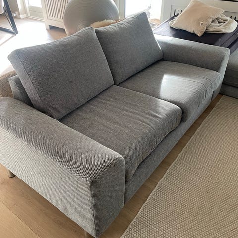 Grå 2 personers sofa. Ikke ryger og ingen dyr. Stået i anneks