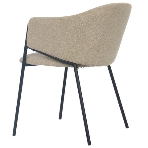 Spisebordsstol i sand Årsag til outlet: Brudt emballage En stol med et enkelt og minimalistisk look, der passer perfekt ind i hjemmet. Det sorte metalstel giver et stilrent udtryk, og det bløde materiale gør stolen behagelig at sidde i. Med god støtte i både ryg og armlæn er den ideel til hyggelige middage eller lange aftener rundt om bordet. Findes i flere farver, så du kan vælge den, der matcher din stil.