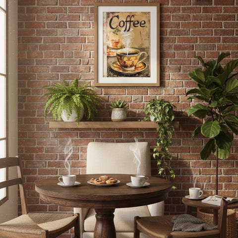Metallplade med motiv af en kop kaffe med skum og kaffebønner. Pladen har en rektangulær form og er velegnet til vægophæng som dekoration. Størrelse 30 x 20 cm.