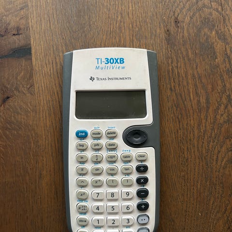 Texas Instruments TI-30XS lommeregner med standardfunktioner til matematiske beregninger. Enheden har et kompakt design og knapper til tal og funktioner, velegnet til folkeskole, gymnasiet og daglige beregninger. Kan hentes på Østerbro i København.