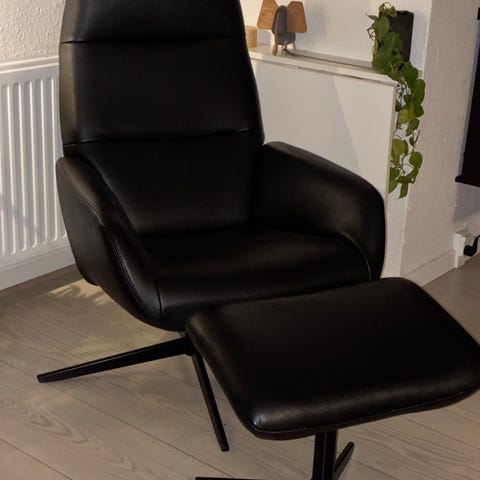 To brune Cosy lænestole i læder med skammel. Dreje stol og juster justerbar ryglæn. brugt få gange. Købte i ilva