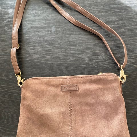 Fiks lille depeche mobiltaske - med plads til lidt mere. Smukt brunt skind, brugt meget lidt.