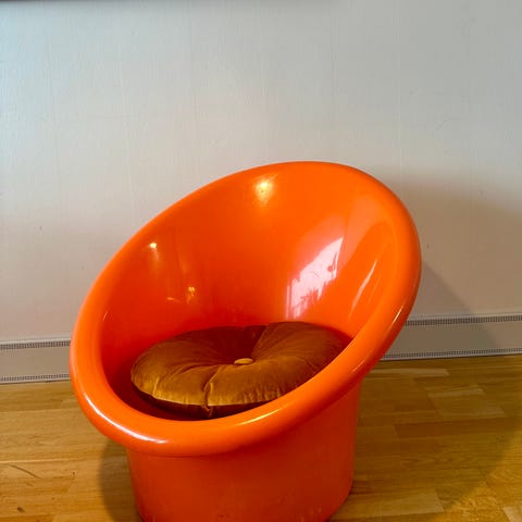 Stolene er ikoniske for 1970erne og datidens fascination af formstøbt plastik, derfor er de også en del af Designmuseum Danmarks udstilling.