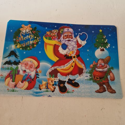 19 flotte jule dækkeservietter med engle motiv og noder. 18 ens og én lidt lysere end de andre. 40,8 * 28,6 cm.