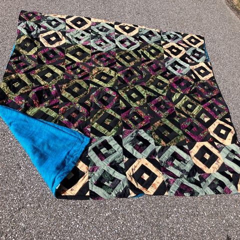 Sengetæppet er håndlavet af en professionel syerske. Det er let vatteret og begge sidder er brugbare.