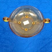 Skålen har et blomsterlignende design med bølgede kanter. Den er lavet af glas.