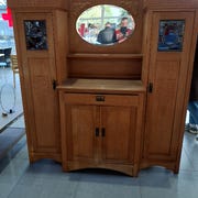 Møblet er en kommode i luksuriøst træ med fine detaljer og en elegant kurvet form.