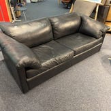 Sofaen har en enkel, moderne form med tre siddepladser. Den er lavet af læder med en blød overflade.