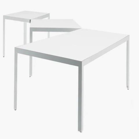 Italiensk designet Konferencebord med hvid glasplade og hvidt metalstel.