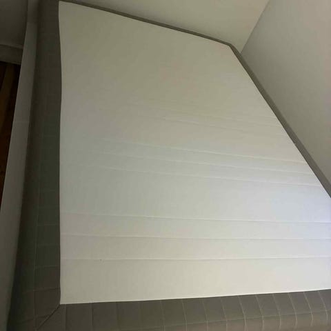 IKEA seng 140x200med lamelbunde og opbevaringsskuffer i bunden. Sengen har en træramme med lameller til madrasstøtte og to store skuffer til opbevaring under sengen. Madras medfølger. Sælges for 3 rammer Pepsi MAX