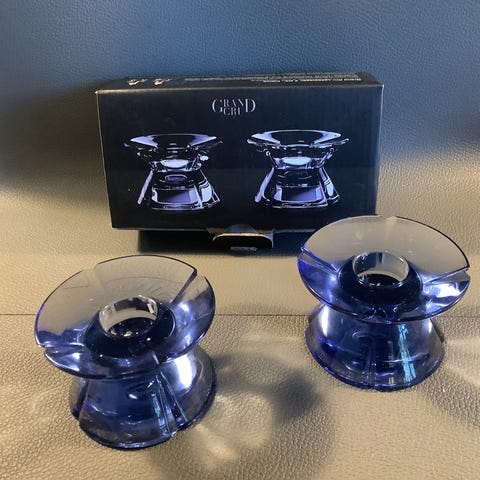 Guaxs lysestager i glas i grå farve.har 4 styk isærindeholder tre lysestager i forskellige størrelser. Velegnet til brug som dekoration til fyrfadslys.