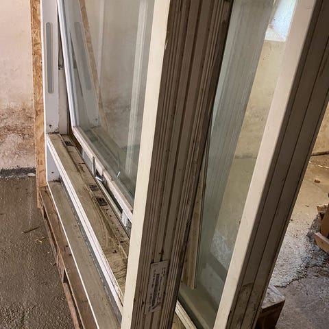 Vinduet har en klassisk ramme med firkantede ruder og er lavet af træ.vindue med alluliste i bund. Scanglas.