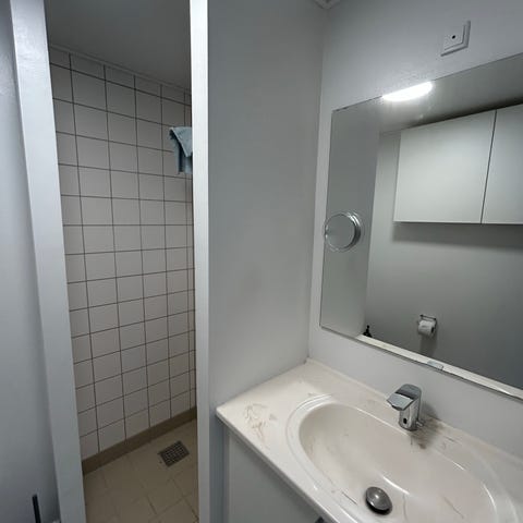 hvid vaskebordplade med indbygget vask. Glat overflade.