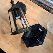 Produktet er en spotlight med bevægelsessensor. Den har en firkantet form, reflekterende overflade og er lavet af metal og plast.