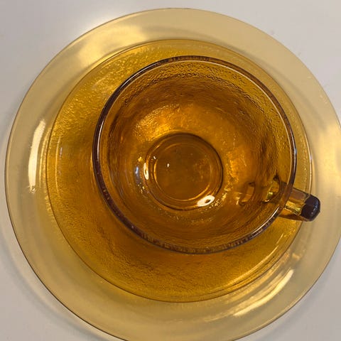 Glas, Kopper, underkopper og kagetallerkner, Arcoroc France, Røgfarvet glaskopper, underkopper og kagetallerkner. 6 stk af hver.