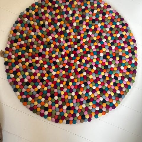 Tæppet har næsten ikke været brugt, men kanterne er blevet noget afbleget på den mørke side, der hvor der har været foldet sammen.