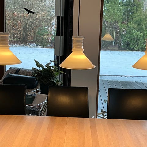 Sælger denne klassiske og tidsløse apoteker-model i den sjældne store model på 40 cm i diameter. Lampen er designet af Sidse Werner og produceret i mundblæst opalglas af Holmegaard for Royal Copenhagen.