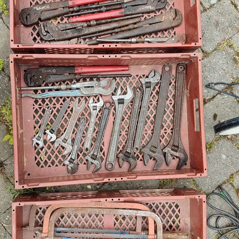Brugt værktøj fra kendte mærker skruetrækkere, skiftenøgler, tænger og mejsler