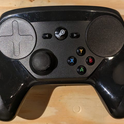 Valve's Steam kontroller. Stor fan af den, men jeg spiller ikke så meget længere så den bliver sjældent brugt. Bruger 2xAA batterier.