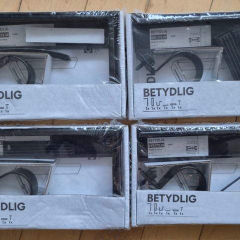 IKEA BETYDLIG vægbeslag til gardiner 6 stk for 100 kr, aldrig åbnet.