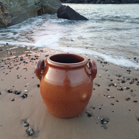 Nobel Hånddrejet Stentøj Krukke med Blå Dekoration