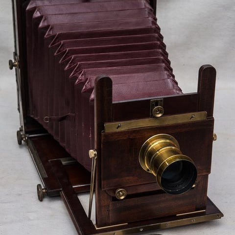 Andet, Storformat 4,75x6.5", God, Mahogni storformat letvægt camera i format 6.5 x 4.75 tommer. Samt 3 dobbeltfilmkassetter og Fujinar 1:4.5 f=180mm.