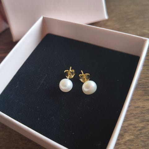Line & jo perle ørestikkere med sølvfatning. Lyserøde perler. 2 stk lidt større end den 3 som er lille.