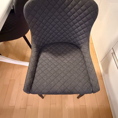 4 stk. grå stof spisestue stole 250 kr. pr stk. De fejler intet, kommer fra et ikke ryger hjem.