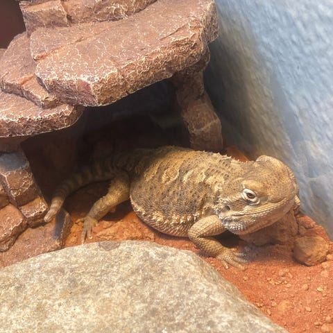 Denne hun skægagame søger et dejligt nyt hjem. Hun er håndtam.