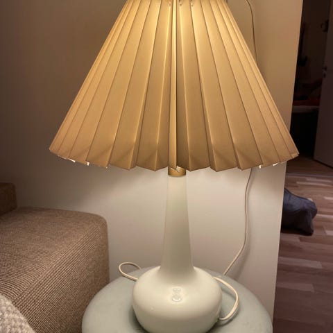 Flot hvid opal Le Klint lampe model 311 designet af Esben Klint. Er af ældre dato, men velfungerende. Lampefatningen er dog lidt skæv, deraf prisen, tænker at det kan korrigeres med stativet til lampeskærmen. Syner meget lidt, se fotos.