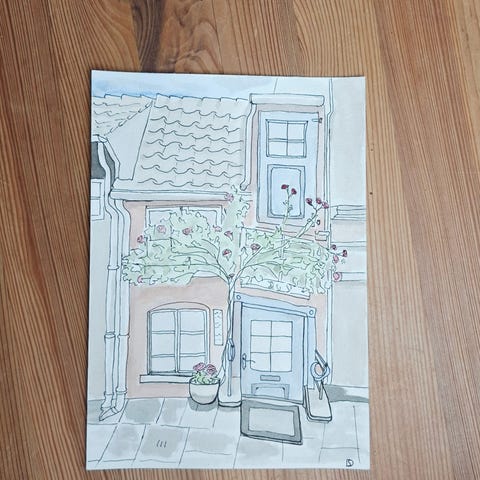Tegnet i hånden på kraftigt papir.