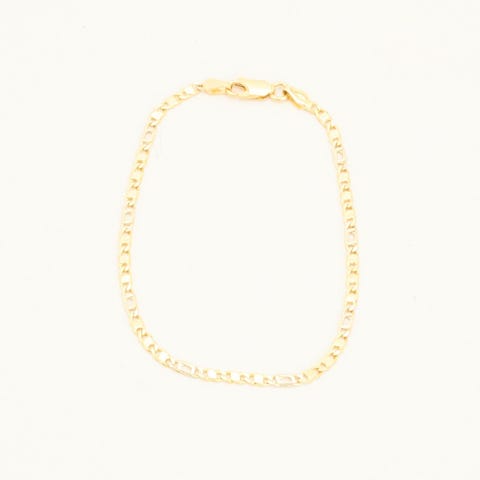 Guld og hvidguld Armbånd i 14 karatEstimeret nypris: 6750,00 kr\nModel: Mariner Link\nVægt: 3.25 gram\nLængde: 19.5 cm\nBredde: 3.3 mm\nStand: Som ses på billeder, god stand med almindelige brugsspor og slidtageHos anotherslegacy.dk får du:\n✓ Gratis fragt på alle produkter\n✓ Pakken sendes inden for 1-2 dage\n✓ Din pakke er forsikret under transport\n✓ 14 dages guld bytte- og returretHos anotherslegacy har vi høje standarder, til de produkter vi sælger:\n• Alle produkter er blevet ultralydsrenset\n• Alle produkter er gennemgået for fejl og mangler\n• Alle produkter har fået en lødighedstest i røntgen maskine. Vi sælger IKKE forgyldte genstande\nBook en fremvisning i dag.Butik:\nH. C. Andersens Blvd. 38 st. tv., 1553 København V\nMandag-Fredag 09:00-17:00\nGG170278